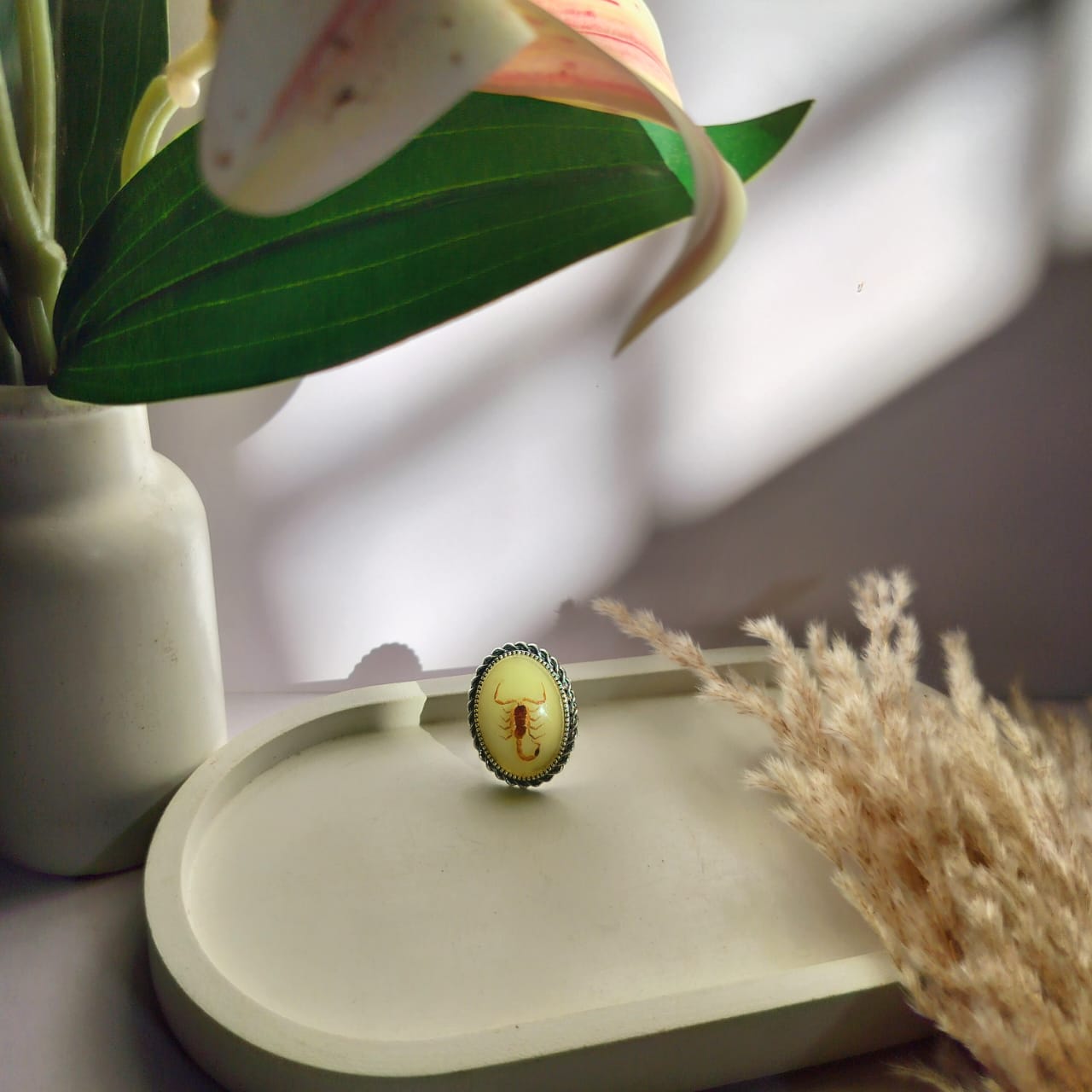 Adjustable glow in dark real scorpion finger ring