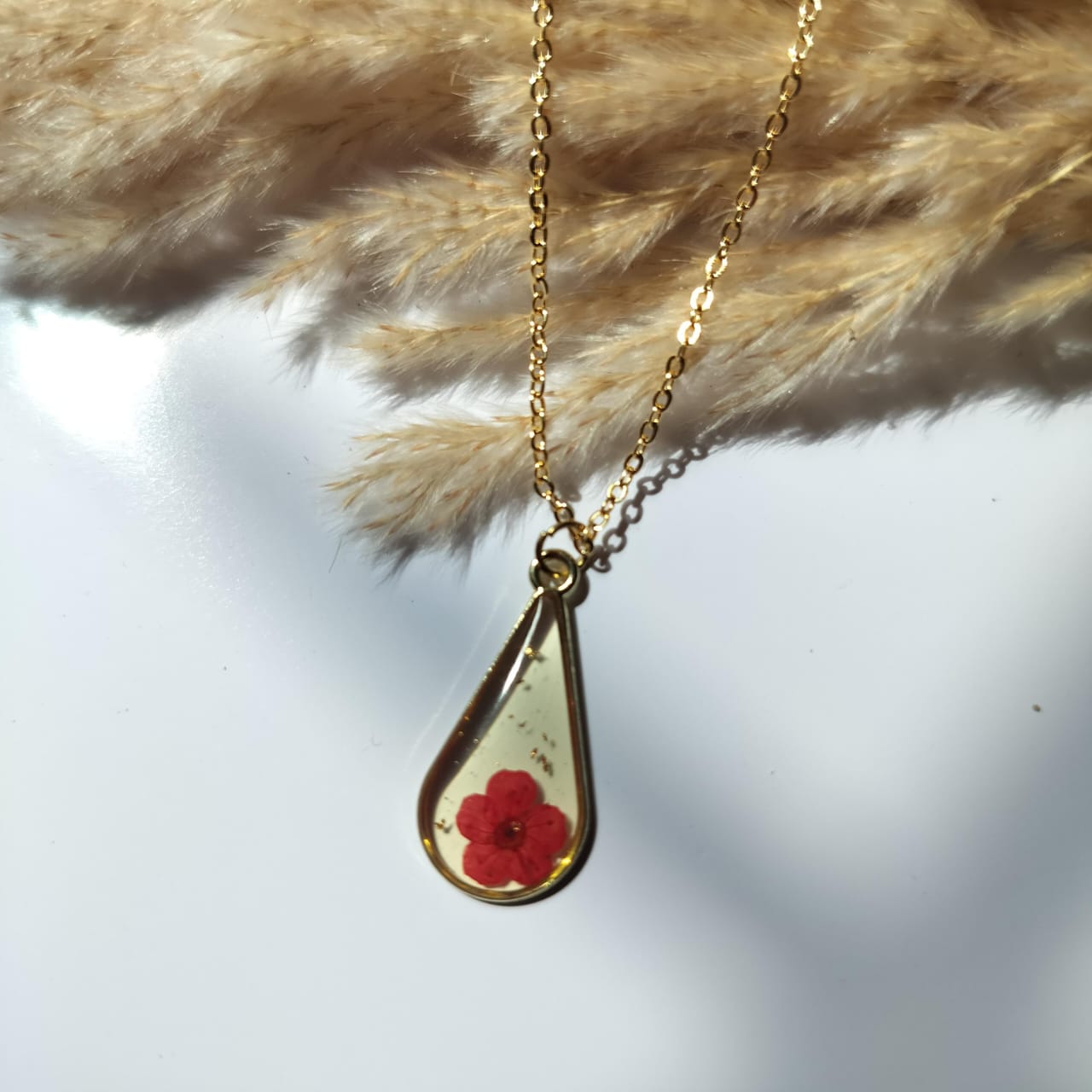 ​Each of our botanical necklaces features real, hand-pressed flowers preserved in crystal-clear, high-quality resin. Housed in delicate gold-toned geometric frames, these pendants capture the fleeting beauty of a garden in a timeless piece of wearable art.
