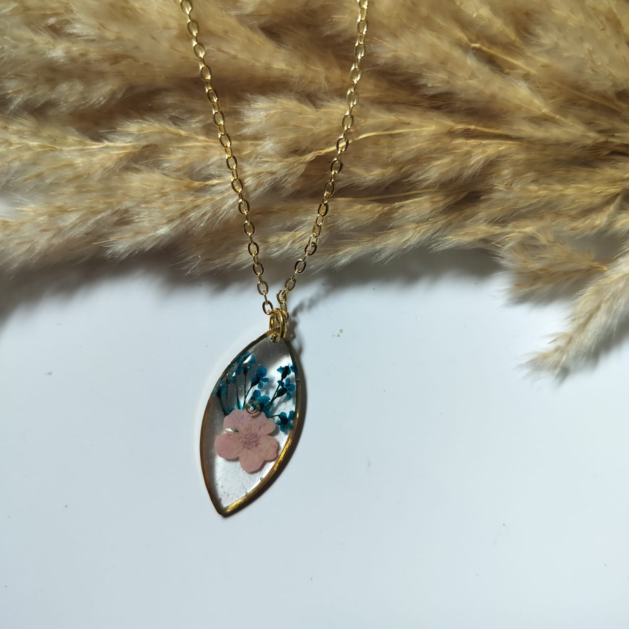 Add a bold touch of nature to your look with this vibrant botanical pendant. This piece features a perfectly preserved red wildflower and a delicate green leaf sprig, suspended in crystal-clear resin. The modern “cushion-cut” square frame with rounded edges provides a sophisticated, polished look that highlights the organic beauty within.