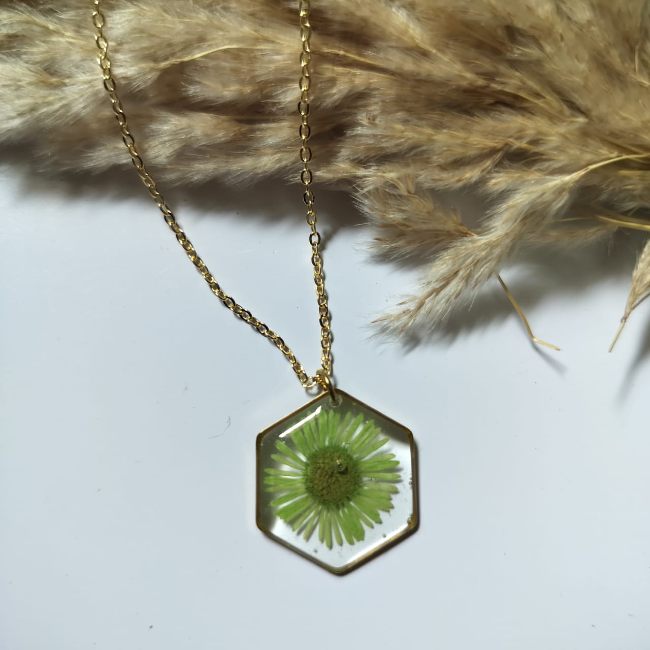 Real Dried Flower Hexagon Pendant